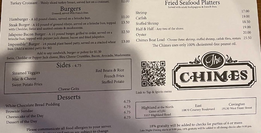 Restaurant The Chimes East invites you to experience the perfect blend of fresh seafood, bold flavors, and a lively Southern atmosphere. Known for its hearty bar fare and impressive global beer list, The Chimes East has become a beloved gathering place for locals and visitors alike. Whether you’re craving oysters, classic American comfort food, or an ice-cold beer after a long day, you’ll find a warm welcome and unforgettable flavors waiting for you. Join us and discover why Restaurant The Chimes East is one of Baton Rouge’s top dining destinations.